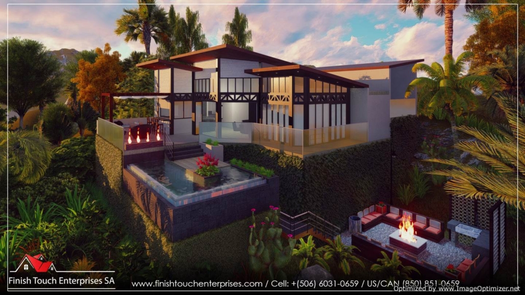 The design does not take up a large footprint. Therefore, it is very simple to construct this home on any size lot. The design was particularly designed for steep-sloped lots. Materials can be transported on mountain roads with ease. Construction methods are simple and familiar to local tradesmen. There are very few blocks, cement, and rebar. The main structural elements are red iron I-beams, girts, and perlings. The elements do not require a facade to be installed, thus minimizing labor costs.