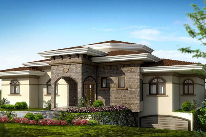 Which provides shading on the house for natural cooling. Furthermore, stucco finishes give pleasing colors.