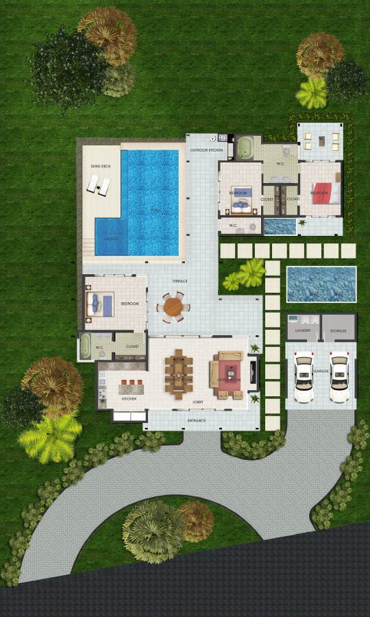 This is a popular design and was built 3 times. You will notice this when viewing photos of this design throughout this website. We have sizes from 1,200 sq. ft to 2,000 sq. ft. We also have 4 bedroom designs of this model and 3 bedroom designs. I will also mention, the second building can be duplicated throughout the property for rental purposes.