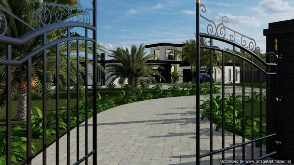 There is a wow factor when approaching the property with its wrap-around masonry and wrought iron fencing, and main gate. Manicured estate lot with gardens and tropical trees.